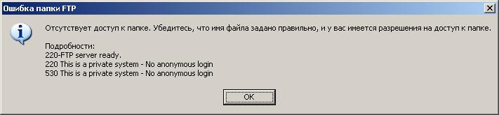 Открывается окно Explorer-а и сообщение об ошибки папки FTP. Нажимаем Ok.