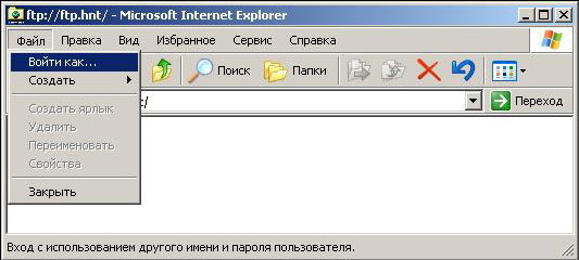 Для использования персонального ftp-сервера можно пользоваться Internet Explorer-ом. Это не очень удобный вариант, однако рассмотрим сначало его. Для этого запускаем Internet Explorer и в адресной строке набираем: ftp.hnt