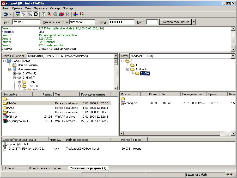 Если Логин и Пароль введены правильно, то вы получите доступ к персональному FTP-серверу.