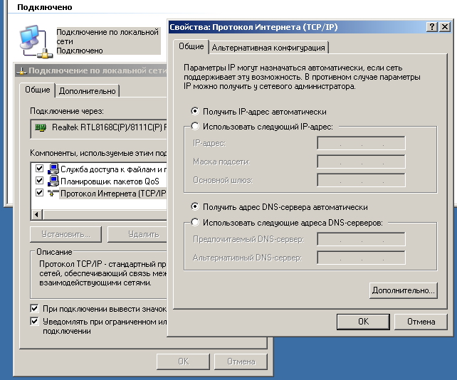 Перед тем как начать настройку роутера, измените настройки компьютера так, чтобы получение сетевых настроек происходило автоматически.