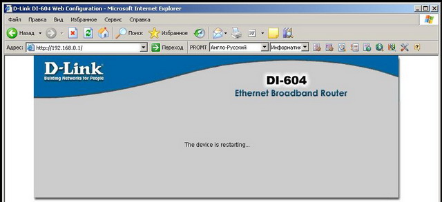 Нажимаем Applyи ждем пока Интернет-маршрутизатор сохранит настройки и перезагрузиться: