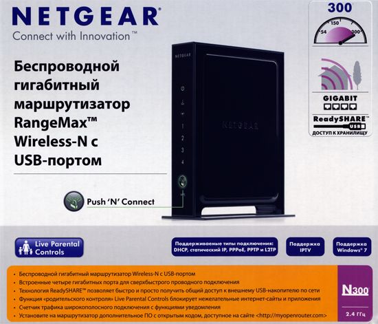 3. Интернет-маршрутизатор NETGEAR WNR3500L поддерживает беспроводной стандарт связи 802.11n. Поэтому для того, что бы получить максимальную скорость при подключение по радиоканалу необходимо, что бы в Вашем компьютере был установлен беспроводной сетевой адаптер стандарта 802.11n. При этом скорость подключения может происходить на 135 Мбит/сек, а скорость передачи данных при благоприятных условиях 10-12Мбайт/сек. Если у Вас ситуация значительно хуже, то попробуйте подобрать другое место для установки роутера. Например, установить его повыше и подальше от различных источников излучения. Обратите внимание, что в помещениях, где детектируется большое количество беспроводных сетей, Вы можете и не получить максимальных скоростей передачи данных.
