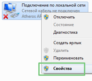 Нажмите правую кнопку мышки на иконке Подключение по локальной сети и в открывшемся меню выберите Cвойства
