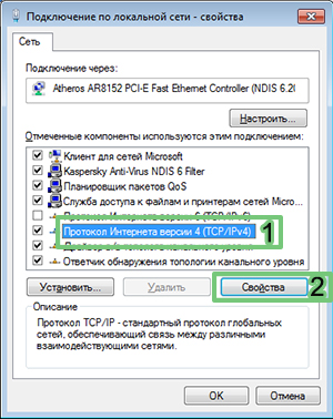Выделите Протокол Интернета TCP/IP версии 4 и нажмите кнопку свойства.