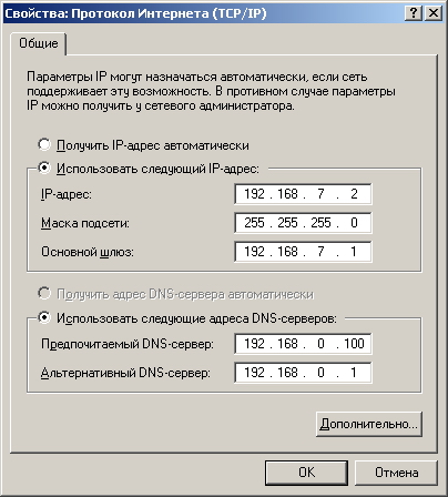 1. Если Вы хотите подключить три или четыре компьютера. То дополнительно Вам понадобиться кусок кабеля витая пара, обжатый с двух сторон коннекторами RJ-45, необходимой длины. При этом в настройках протокола TCPIP (при использование 2-го варианта) используйте IP-адрес 192.168.7.4 и 192.168.7.5 Все остальные настройки протокола TCPIP одинаковые.