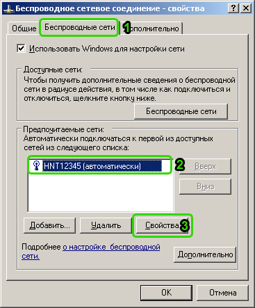 Для этого заходим Пуск — Панель управления — Сетевые подключения — Свойства Беспроводного сетевого подключения.