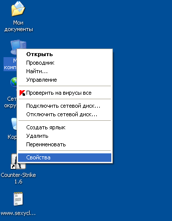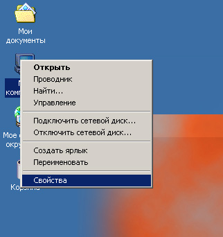 Далее кликнем правой кнопкой мыши на иконку "Мой компьютер" и выбираем... свойства.