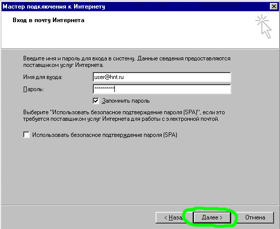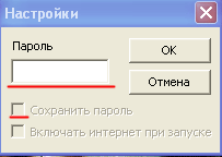 в нём вы должны ввести свой личный пароль из своей регистрационной карточки. И вы заметите, что справа в углу (где часы) появилась "рожица" зелёного цвета Будьте внимательны, при вводе пароля учитываются заглавные и строчные буквы. Маленький совет: можно воспользоваться блокнотом (ввести пароль, а затем, скопировав, вставить в поле "пароль"). Ставите галочку "Сохранить пароль" и "OK".