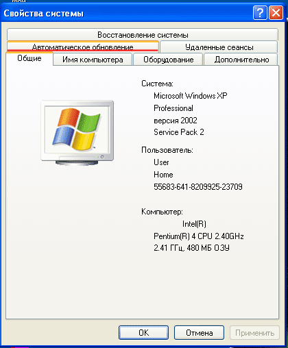 В появившемся окне выбираем закладку "Автоматическое обновление".